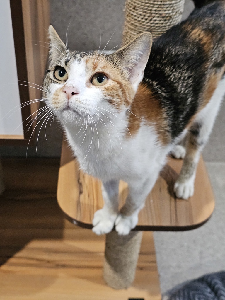 Mixie is the life of the party (and trust us, she is the party). She adores people and never says no to a good pat - in fact, the more pats, the better! Her soft, chirpy little meows are her way of saying, "More love, please!" Whether you're relaxing on the couch or busy around the house, Tinkerbell will be right by your side, purring her little heart out and soaking up every bit of affection you have to give.