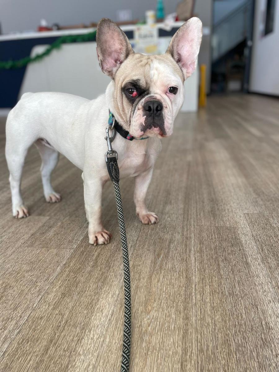 Currently, she is also being treated for an ear infection, likely related to her skin sensitivities, but with the right care and attention, she's expected to thrive. Her caring veterinarians are also addressing a condition third eyelid prolapse, commonly known in her breed to be a 'Cherry Eye'.