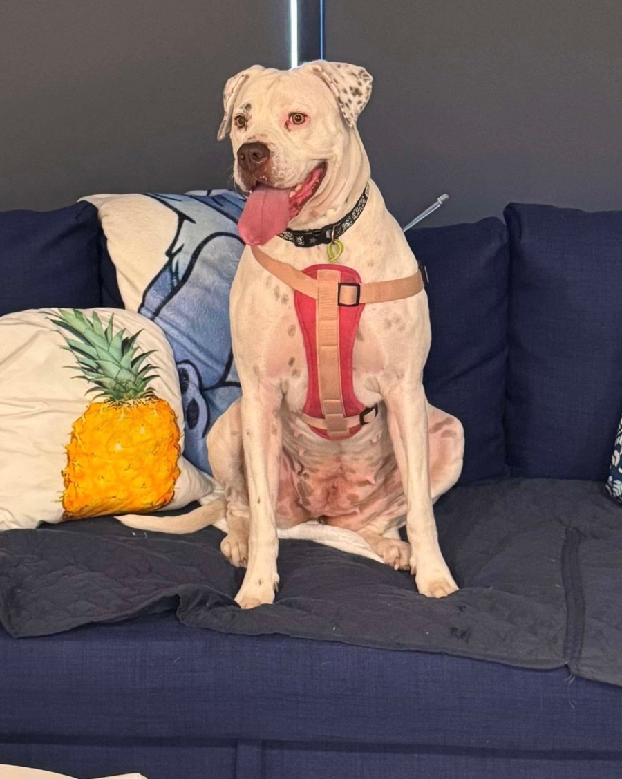 Hi, my name is Cookie. I’m a three-year-old American bulldog x.