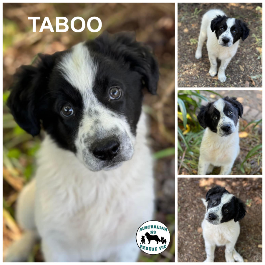 Gorgeous little Taboo is a fun and plucky young pup with stunning good looks and a hilarious personality to match. With his fluffy, snow-white coat and patchy black face and ears, Taboo is a very easy puppy to fall in love with. It must be recognised though that he is very much a working dog breed, and he is looking for an owner with working dog breed experience who is prepared to meet the high activity needs of both his mind and body.Hes a cuddly lovebug and a loyal pup