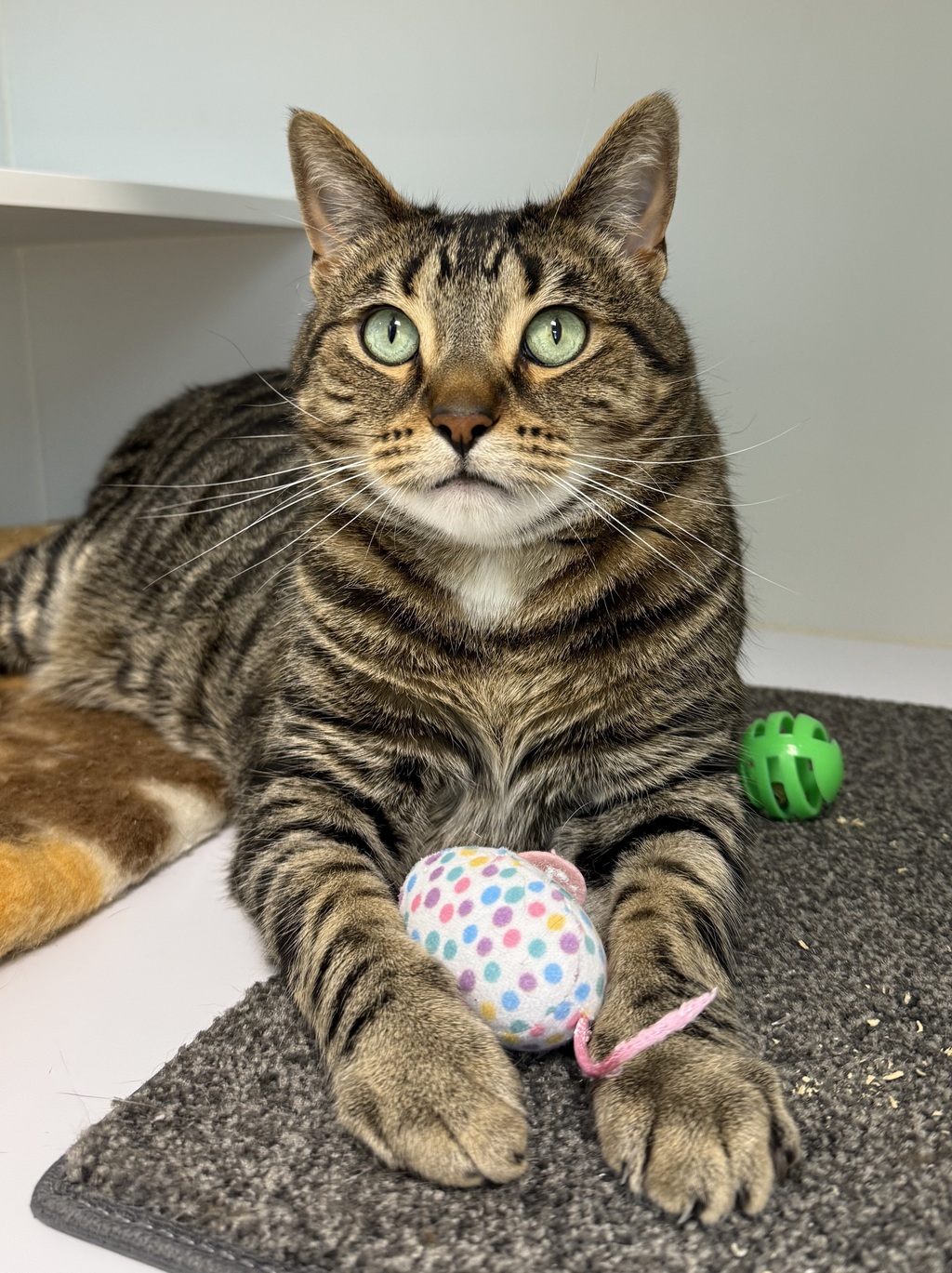 With the right environment, he'll quickly show his playful side, chasing after toys and he will show you his love for watching cat tv!. He would thrive best in a quiet home with no other pets as he rather all your love and attention to himself. This sweet Boy will make a wonderful addition to a family that has the time to give him the gentle care he deserves.