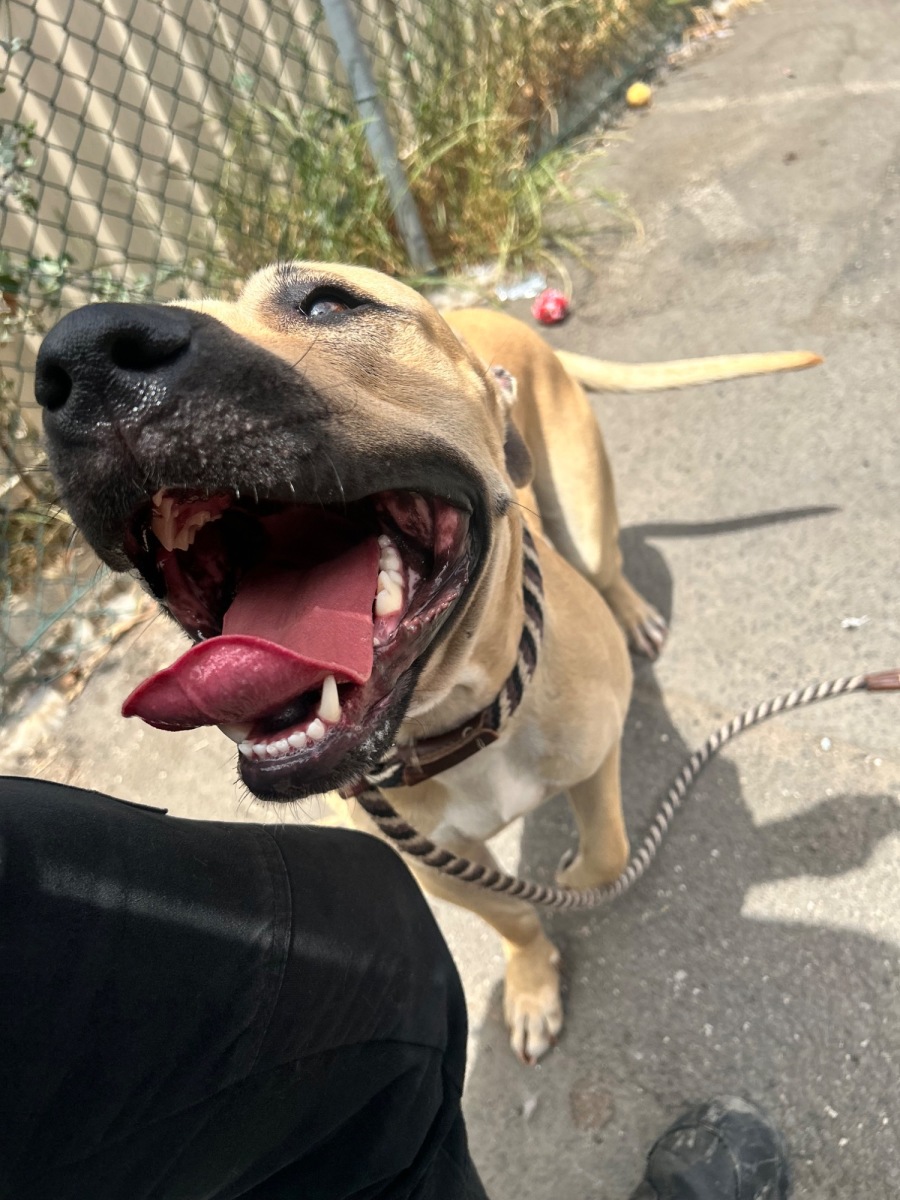 Social and spirited, Loki enjoys the company of other dogs and thrives in an active setting where he can frolic and play. While he may come on a bit strong during initial introductions, his playful spirit soon shines through, making him a great addition to a family with other dogs. His exuberance extends to outdoor adventures; Loki is always eager to go for a walk, embracing each journey with excitement and curiosity.