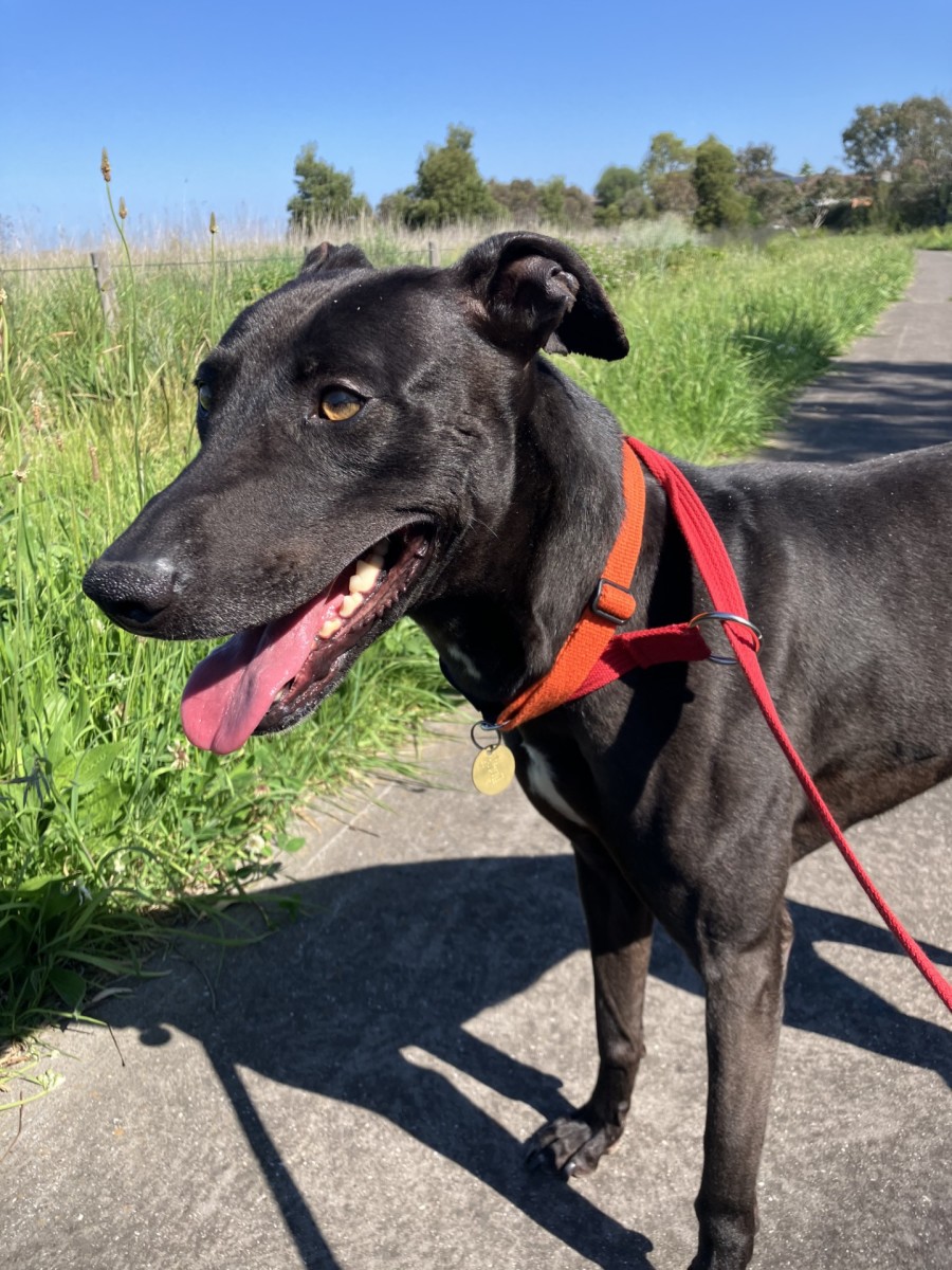 Endorphin is a truly special boy with a heart full of joy and a personality that lights up any room. He has the calm demeanour of a greyhound, the affectionate wiggles of a staffy, the intelligence of a Lab, and maybe even a little bit of Scooby-Doo charm.