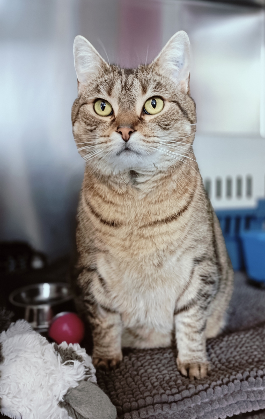 Missy is a sweet and affectionate female tabby who is 5 years old. She is a chunky girl who loves attention and snuggles. Missy has a loving nature and enjoys being the center of attention. She is an inside cat who is looking for a forever home where she can be pampered and loved.