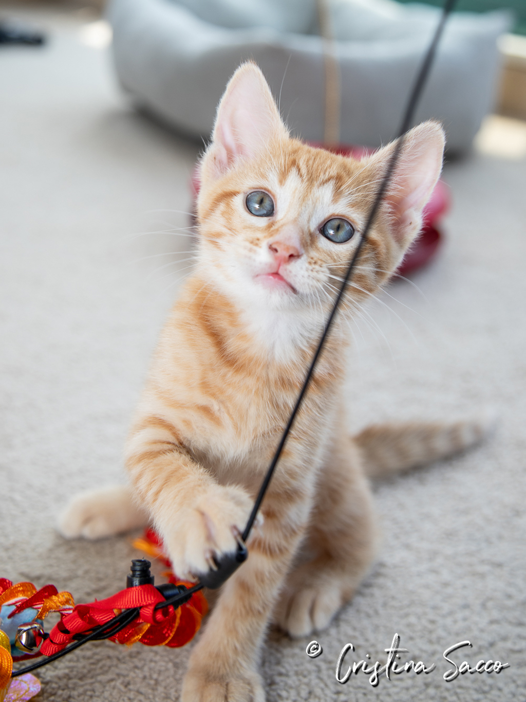 Achilles is the gorgeous ginger kitten that you have been waiting for! He will come into your life in true ginger style - life is one big game for Achilles, always looking for rolly polly, soccer game or a wiggly wand toy chase around the room. You will always find Achilles tangled up in his latest game, having the time of his life. You can see the photo proof!
