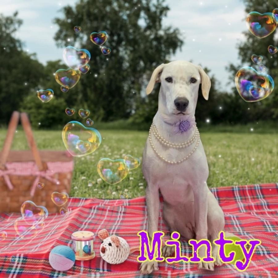 Minty is respectful with cats and other dogs, but she’d be happiest either as someone’s one-and-only or with a mellow canine buddy who shares her calm nature.