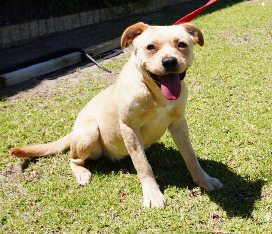 Toffee is a delightful 7-month-old mixed breed who might just have a dash of Spaniel mixed in with Staffy in her lineage! She is quite different to your usual staffy mixes!