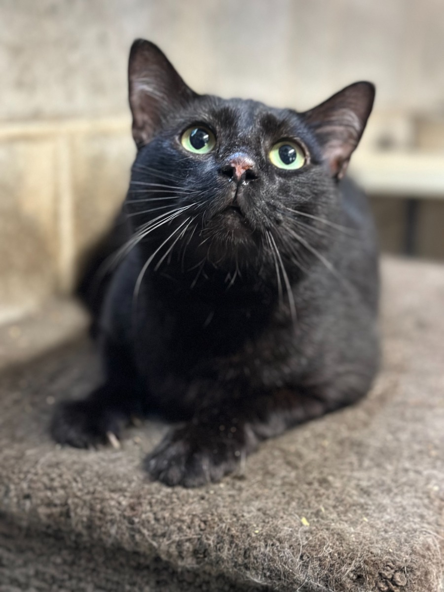 If you’re looking for a gentle, mostly black cat with a heart of gold (and a little spot of white!), Coco might be the perfect addition to your family!