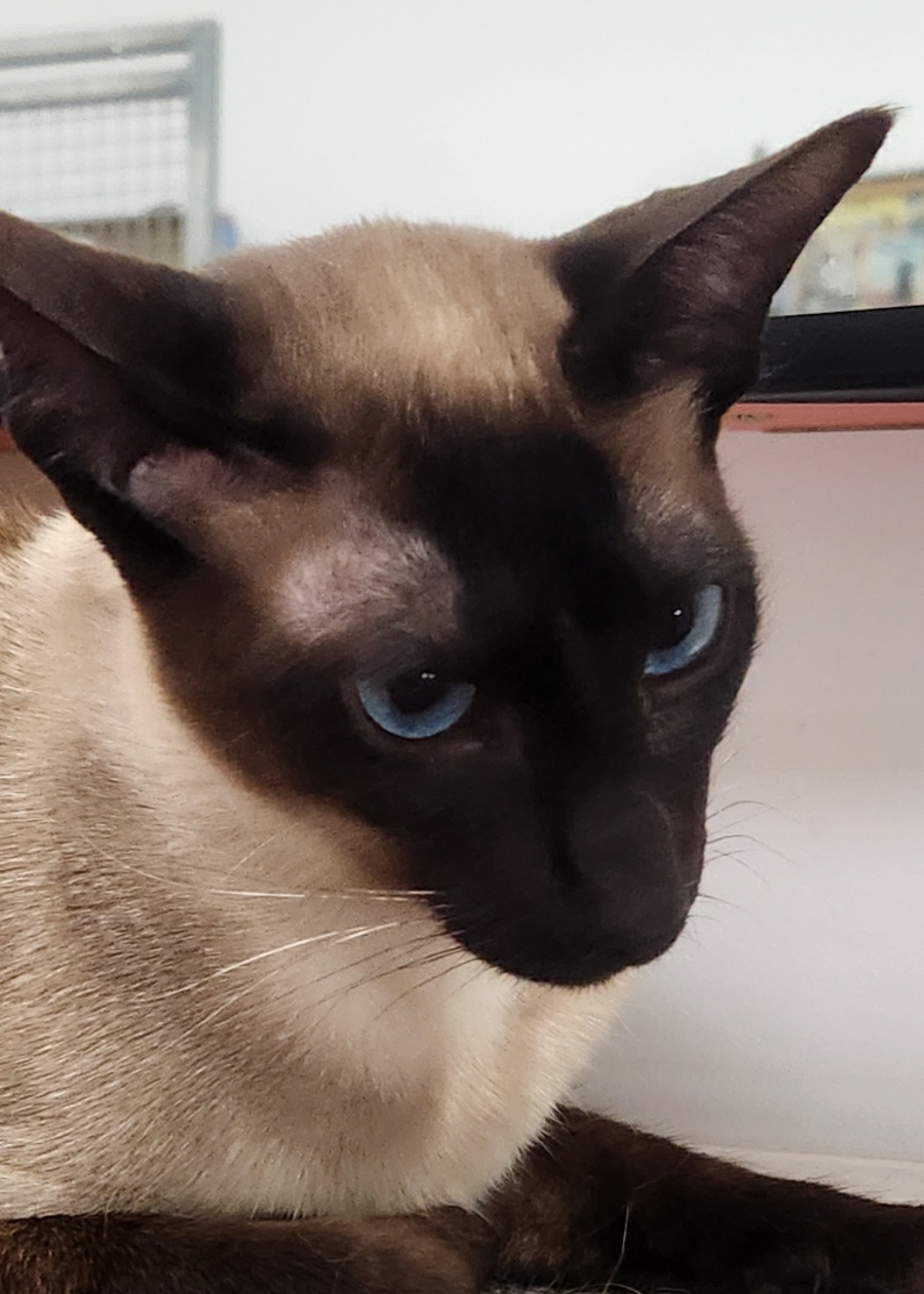 Meet Nelly, a stunning seal point Siamese who has recently joined us at AWAR and is ready to find her new family. This elegant feline beauty is about 18 months old and has already charmed everyone with her striking looks. Her sleek coat and mesmerizing blue eyes make her a captivating addition to any home.