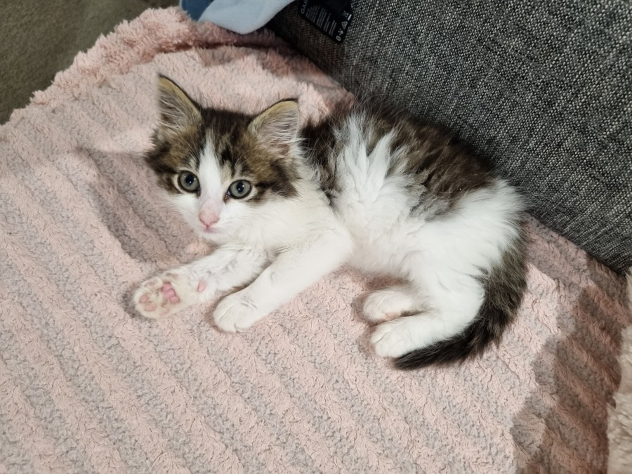 Introducing Penny, a delightful female kitten whose fearless spirit and adventurous nature make her truly one of a kind. From the moment she enters a room, Penny is ready to explore, fearlessly nosing through new surroundings with excitement and curiosity. Her medium-length fur adds an extra touch of elegance to her lively personality.