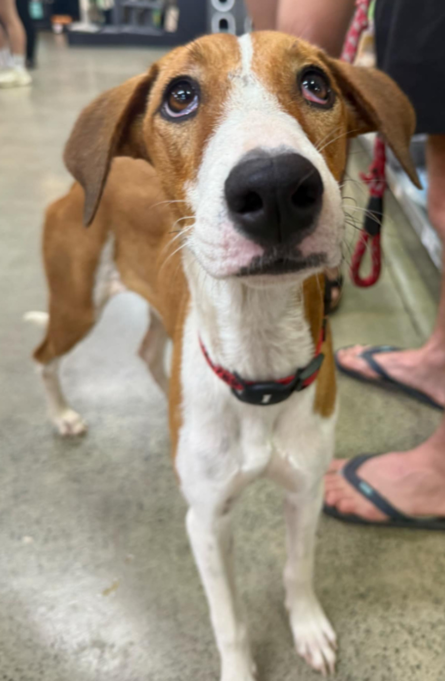Keiko is a beautiful 9-month old Whippet x Coonhound. She listens well, her recall is ok and slowly getting better, she is very friendly with other dogs & humans with no aggression at all. Keiko is full of energy, loves playing with her 2 foster siblings and will thrive in a high paced household. She is toilet trained and will sleep all night with no wakeups.