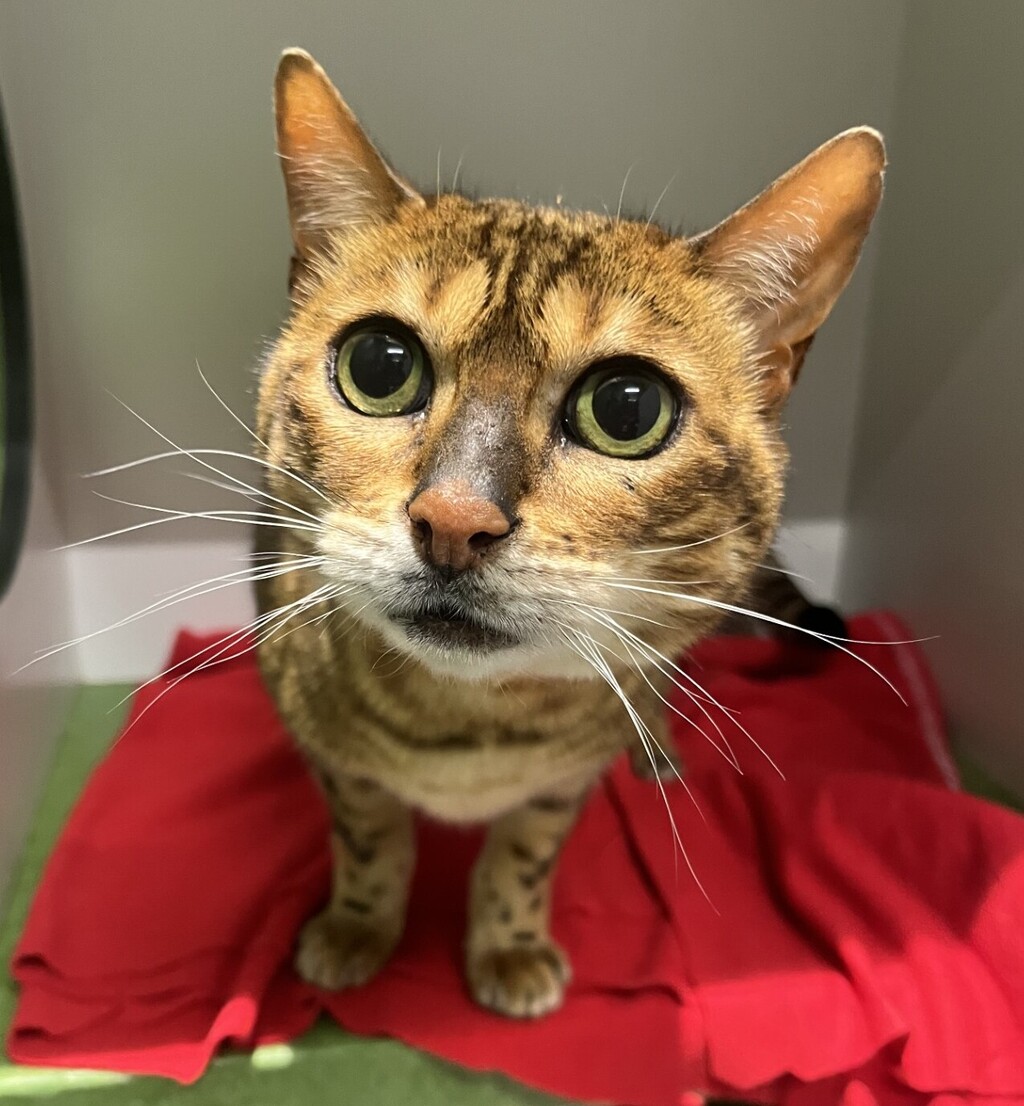 Meet Sashi, a beautiful senior Bengal cat who is as spirited as she is stunning! With her sleek coat and intelligent eyes, Sashi embodies the distinctive traits of her breed. Bengals are known for being vocal, curious, and incredibly smart, and Sashi is no exception. She'll make her presence known with her chatter and enjoys exploring her surroundings in a way that only a Bengal can.