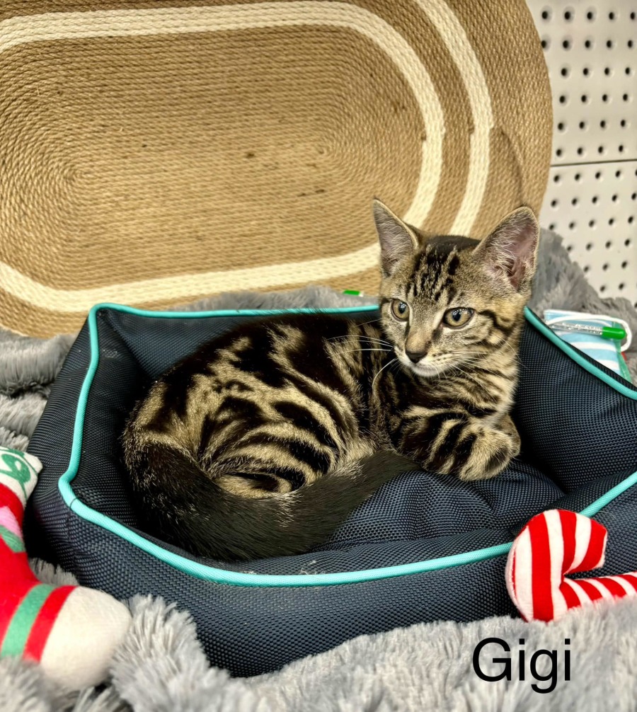 GiGi is a happy, affectionate, cheeky and playfull kitten with a soft meow and a motor that starts as soon as she sees you. GiGi is curious and loves playing with anything and everything, including playing tag with you (as long as she's the one chasing). GiGi gets along with cats and dogs and is persistent in becoming their friend.