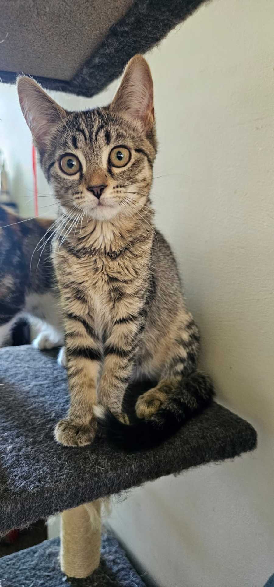 Little Bean is a charming kitten with a playful spirit. She loves chasing her siblings, batting at toys, and curling up for cuddles. Her soft fur and gentle purrs are sure to melt your heart.