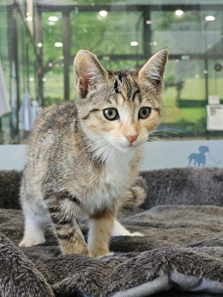 Hey there, I'm Starfell. I'm a friendly and affectionate kitten who would suit most homes! My playful paws are always ready to pounce on anything that moves. I love playing with wand toys and mysterious shadows on the wall! When I'm finished playing, I love nothing more than finding a warm lap to curl up in.