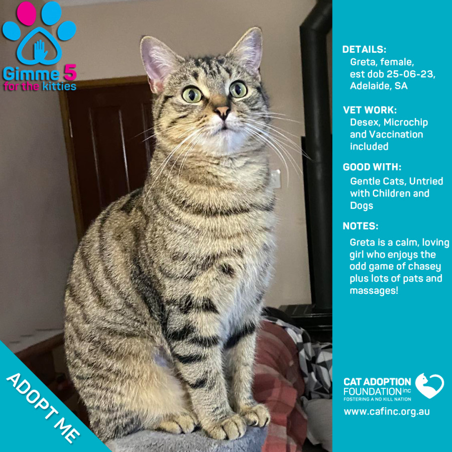 Donate to Greta Only $39 Limited Time! at Cat Adoption Foundation Incorporated via Shout