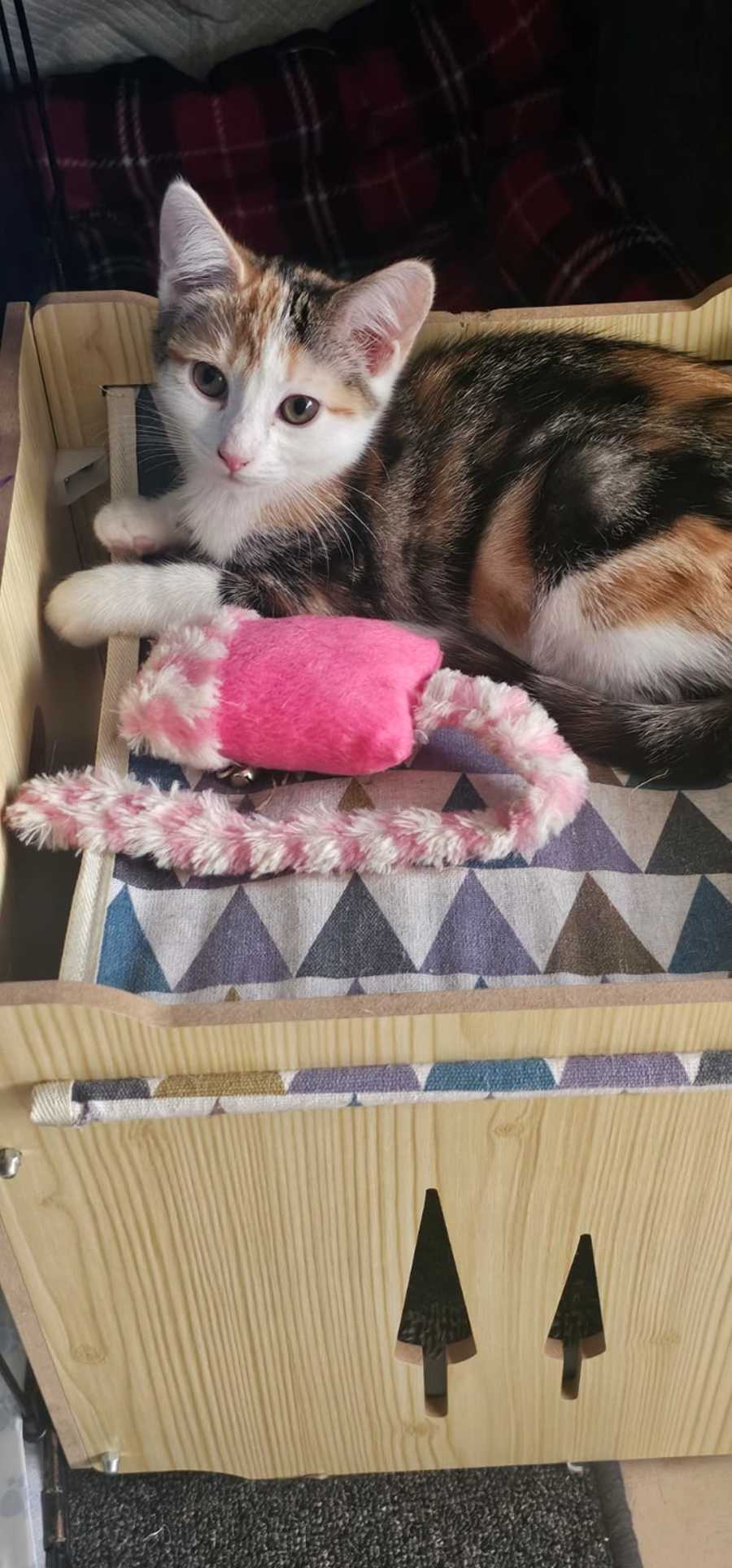 Belle is a delightful kitten who loves nothing more than playtime with her siblings and the occasional cuddle. She's full of energy and loves her toys, but she's also a cuddly sweetheart who would thrive in a home with another kitten or her sibling.