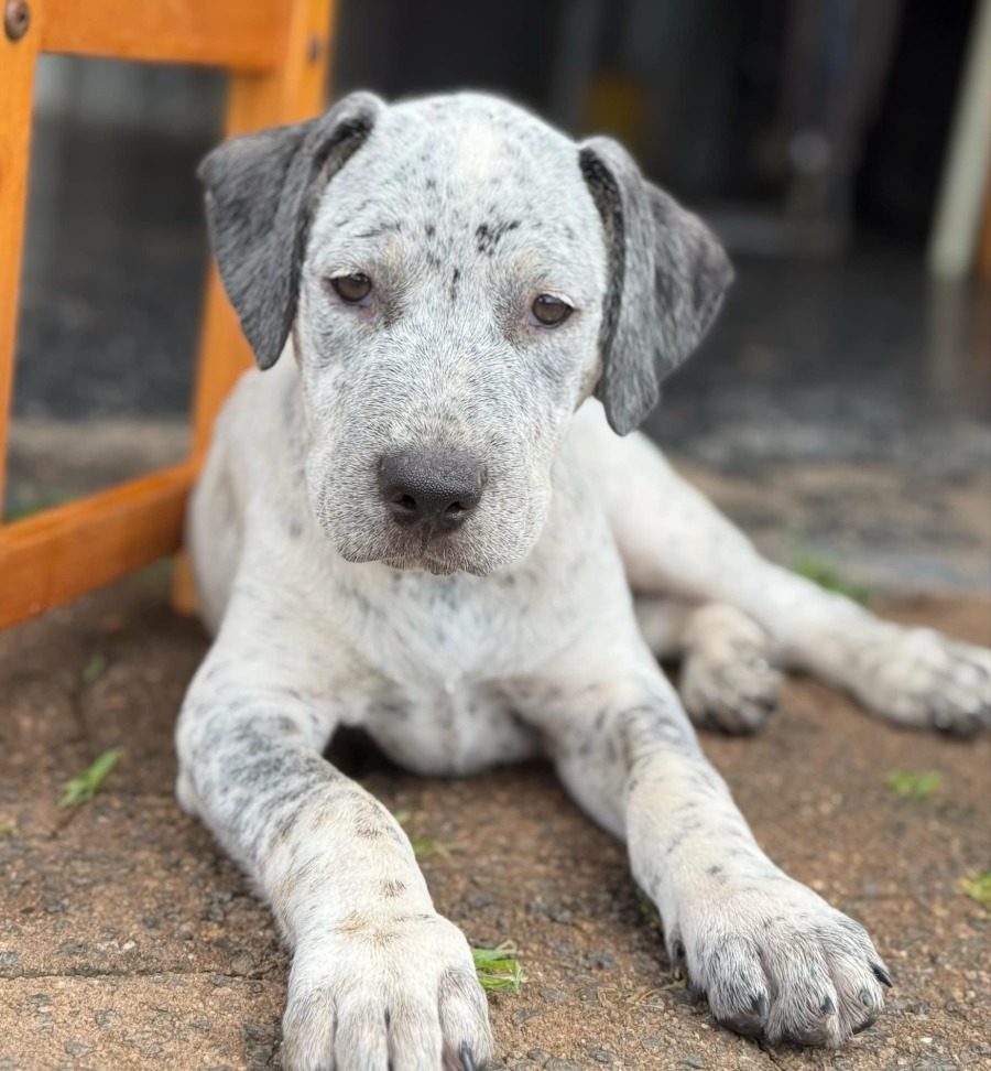 Spud is as handsome as can be. He is lively, playful and oh so adorable. Spud doesn't let any little thing faze him and will conquer his fears head on. In spite of his deafness, Spud has shown us in leaps and bounds that this will not limit his ability and his confidence. He is an amazing boy who knows how to hold his own when his bros get too rough. Spud also sleeps like a ROCK. And don't be surprised if it's somewhere unexpected. Pile of rocks? Yep that's his new bed. He is sure to brighten anyone's day. Due to Spud's special needs, his foster carer has been working on introducing hand commands and signals to assist Spud in learning the foundational skills of puppyhood. He will require an adopter who is willing to continue this work and strive to ensure his utmost care. Spud is being fostered with dogs, cats and kittens, and is not fazed by feline presence, he just wants to play with everyone!
