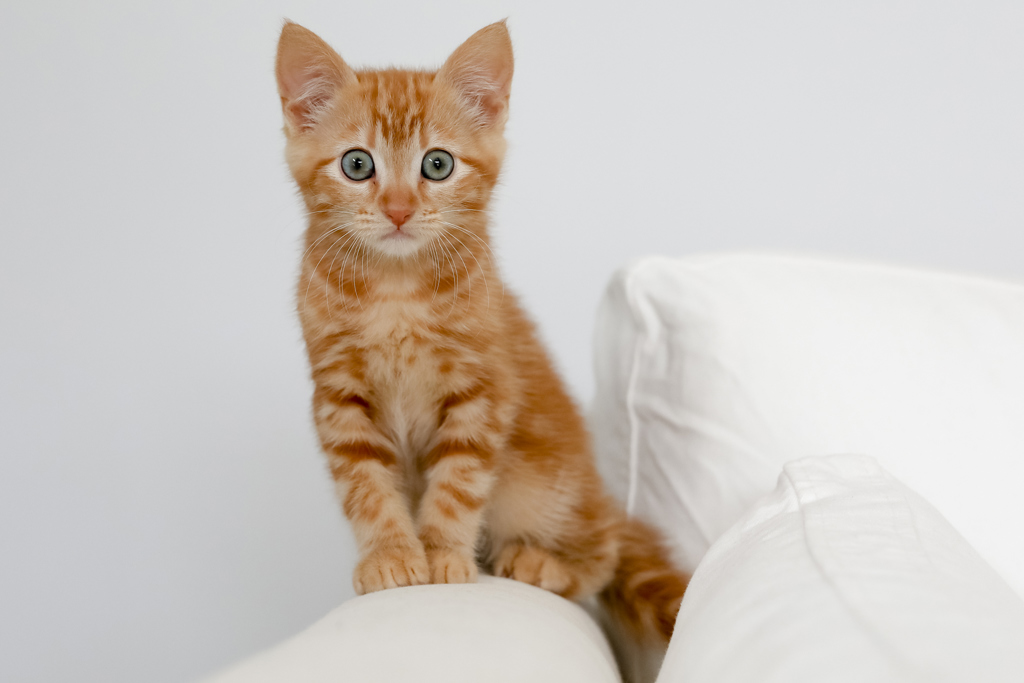 Despite being the most ginger kitten we have ever seen, Diego doesn't always channel his very ginger genes. Instead of being totally crazy and running at life full on, Diego is a bit more chilled out than the average ginger. He is thoughtful, gentle and even a little bit bashful. He can sometimes take a minute to really take in new people and new things and fully appraise them before giving them a tentative little sniff, but as he loves to play and he loves attention, he's really not that hard to win over!