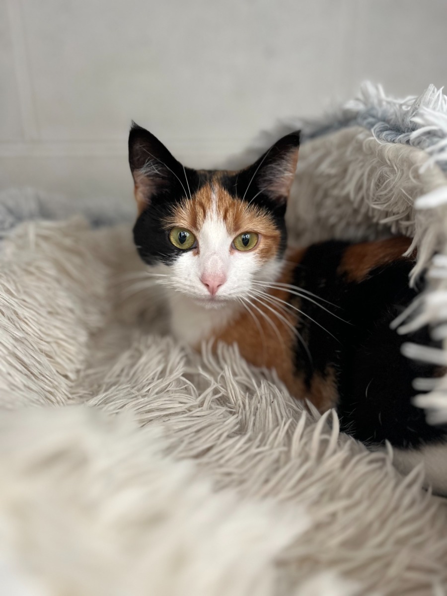 Meet Stella, a serene and stunning feline companion looking to find her new family. Stella is a beautiful cat with a gentle demeanor that perfectly matches her graceful appearance.