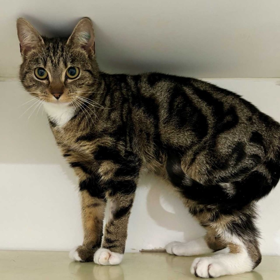 Hi, I'm Mia! I'm a sweet and affectionate 1-year-old Domestic Shorthair with a beautiful tabby and white coat, and I’m on the lookout for my forever family! I can’t wait to share all my love and cuddles with the perfect humans.