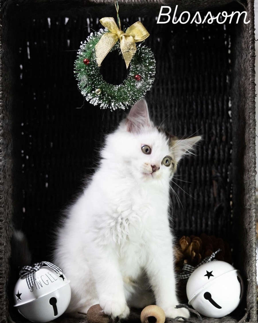 Introducing Blossom, a delightfully silly and fearless little feline who's ready to bring laughter and love into your life. This mischievous cat embodies the curiosity and playfulness of a typical kitten with a personality that's as charming as it is adventurous. Blossom will keep you entertained with his amusing antics, like being the first to climb the Christmas tree or struttin' around with a ball in his mouth as if he's just won the jackpot.