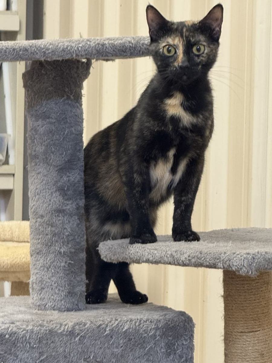 Chai is a fun and engaging girl who loves to play. She enjoys climbing to the top of her scratching pole so that she can survey her kingdom.