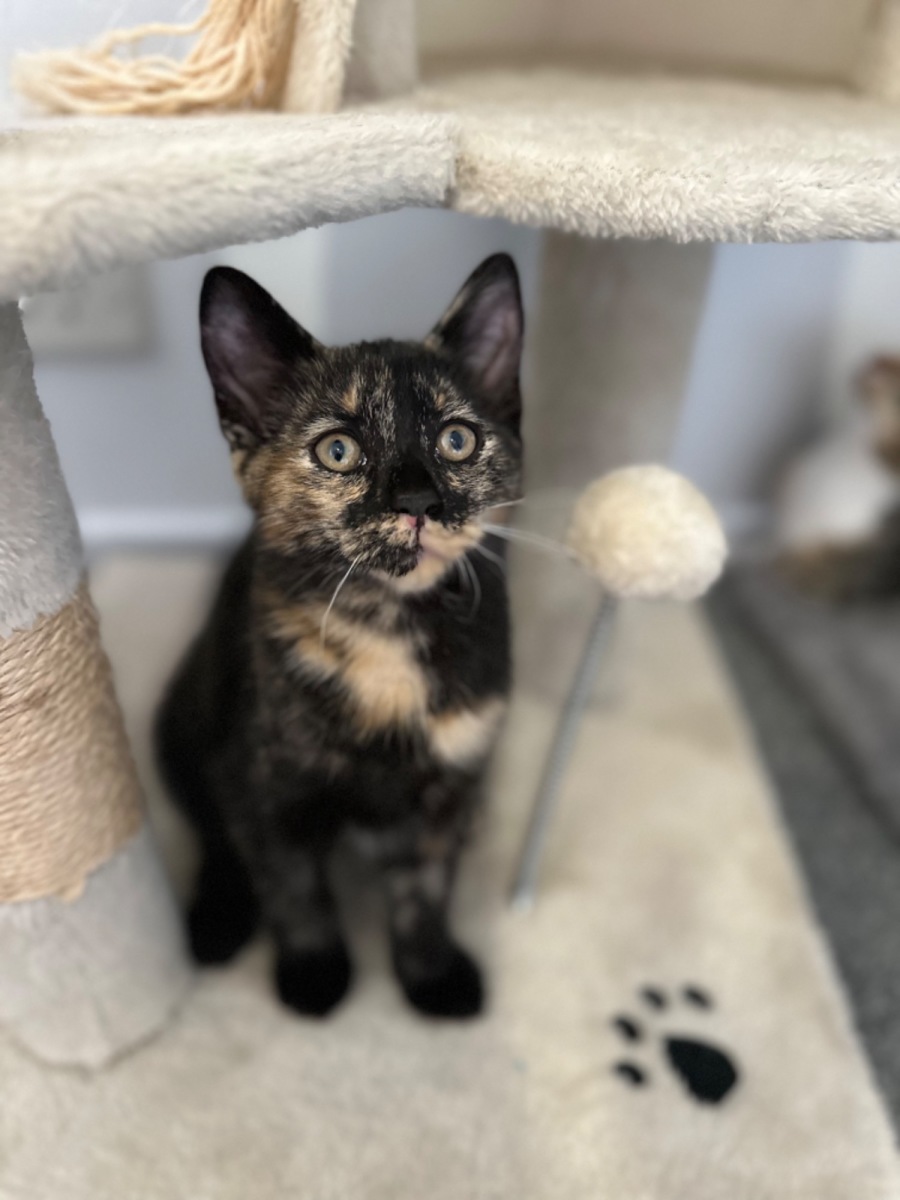 Dottie is super confident and friendly; her ease in adjusting to new environments makes her a joy to have around. Whether she's exploring her surroundings or lounging serenely, her curious and adventurous spirit shines through. Playtime is an absolute delight for Dottie, as she loves all sorts of games and finds endless joy in jumping around on her scratching post.