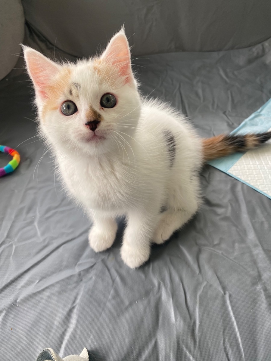 Evie came to care as a tiny 4 week old bubba. We don’t know much about her history, but since the moment we got her, she’s been an absolute dream. Evie is a lover, a gentle, beautiful, calm and affectionate little girl with a heart of gold. Evie is a purr machine, the moment she’s given any sort of attention, she purrs away like a steam train. Evie adores the company of other cats and dog friends, unbothered by their rough play and their crazy antics. Evie is also unbothered by little kids, however doesn’t like to be held for prolonged periods of time, preferring to run around, climb, jump and snuggle. Evie is a beautiful all rounder kitten with so much love to give, we cant wait to see her grow and thrive in her new home.