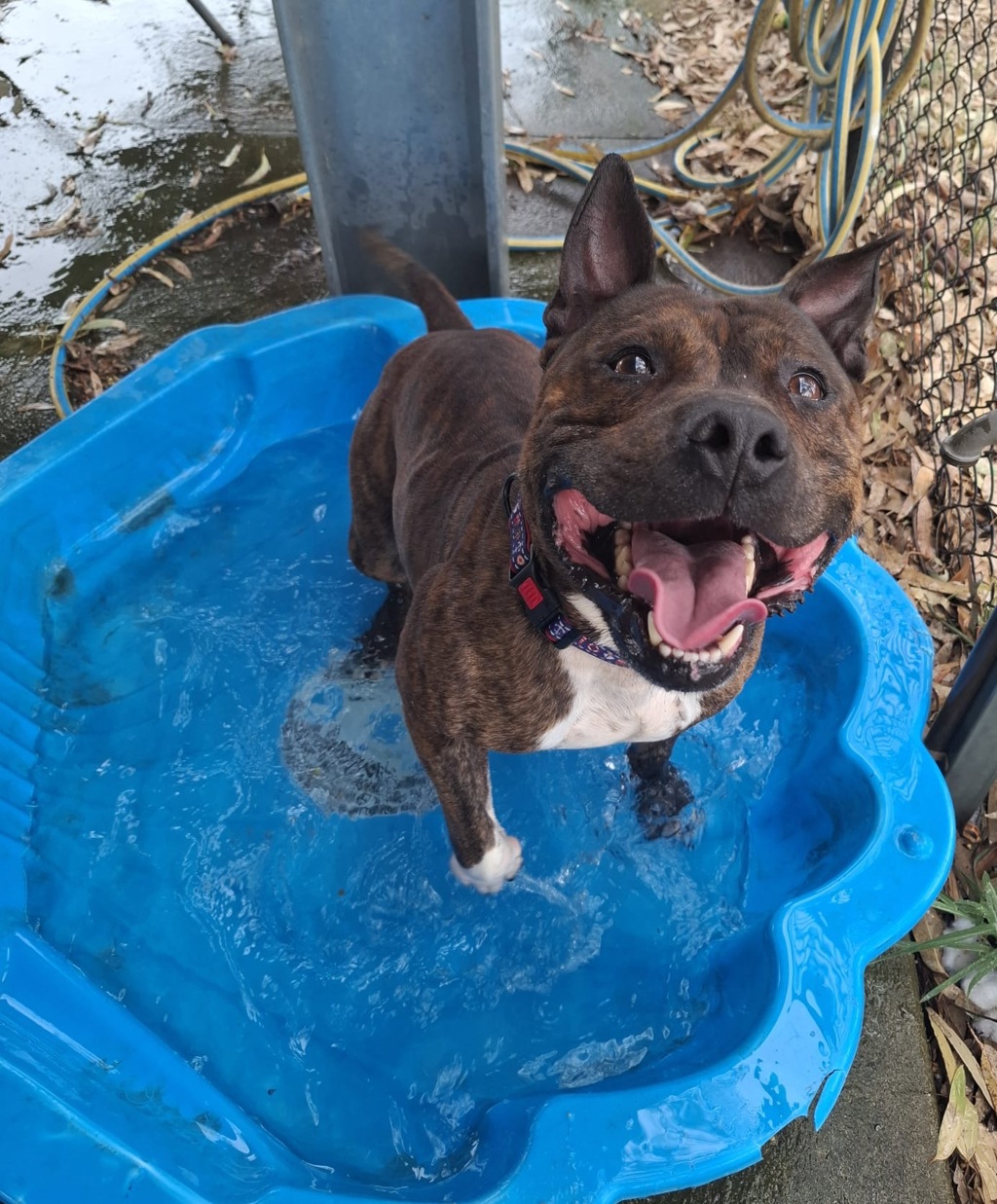 Meet Arlo, a 2-year-old Staffy cross with a lot of potential and a heart full of love! Although Arlo's background is unknown, he is ready to start fresh and learn new things. He will benefit from basic manners training to help set up a strong foundation, including working on loose lead walking and improving his socialization skills. With the right guidance, Arlo has the potential to be the best version of himself.