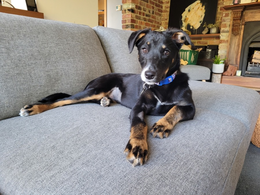 Igzy is the sweetest puppy! Like her siblings, she really has a very sweet disposition and loves to boop your leg to let you know how she's feeling. She gets the zoomies, went through a phase of chewing everything, but she’s incredibly calm and loves cuddles. She’s picked up toilet training quickly, though she still has the occasional puppy accident. She’s great with other dogs and learning to say hello in polite dog-society (but hasn’t been tested with cats). She likes small humans, as she has realised they will play with her forever.