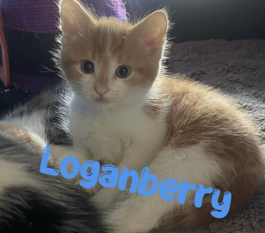 Loganberry is a quiet boy who likes to take everything in his stride. He’s a kitty who likes to sit and watch the others as they go about their business playing and napping. He’s usually curled up with one of his foster siblings but he isn’t bonded to any of them.