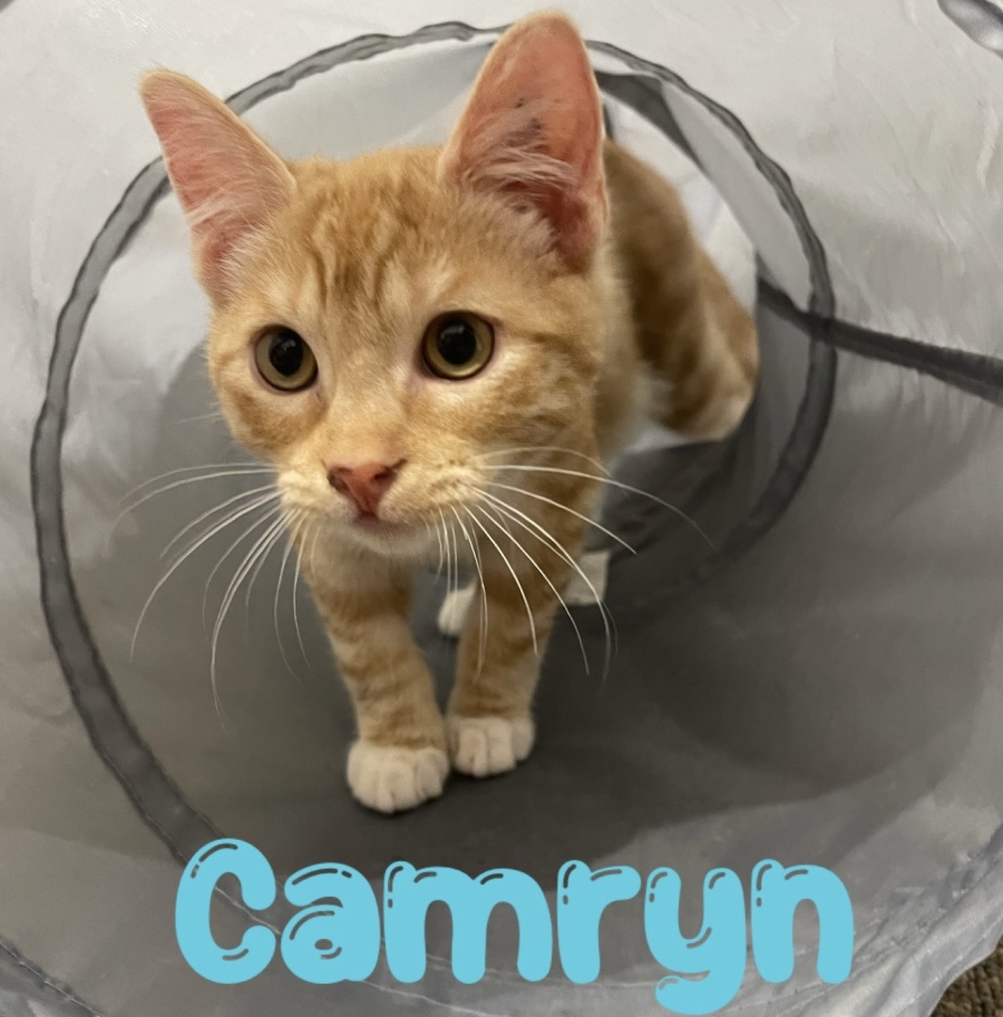 Camryn is a sweet little man who just wants to have all the loves. He was the runt of his litter and is still growing into his body. He LOVES his food and foster siblings. He isn’t bonded to Rheem but he’s never far from him and would love to go to a home with him if it’s possible.