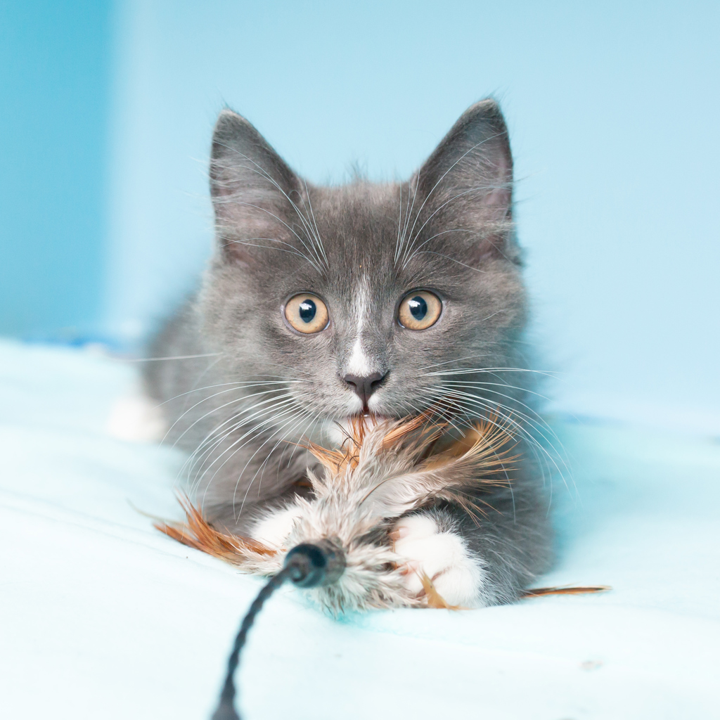 Say hello to Meteor, a 10-week-old male kitten who's ready to streak into your life with boundless energy and charm! This little guy is a bundle of fun, always zooming around, chasing toys, and exploring his world with wide-eyed curiosity.