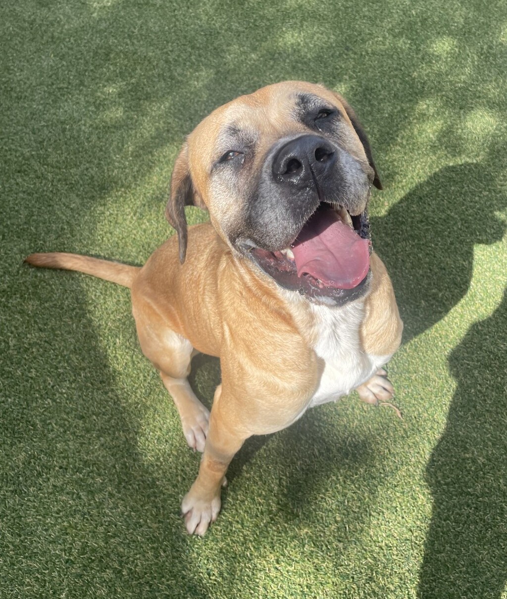 Meet Sunny, a joyful and spirited Bull Mastiff/Labrador mix with a heart full of love and a playful personality! Sunny is a bright, cheerful girl who thrives on attention and interaction. She absolutely loves toys and is a tug-of-war champion, so be prepared for endless fun and games. Social and friendly, she gets along well with both people and other dogs, making her the perfect companion for an active household.
