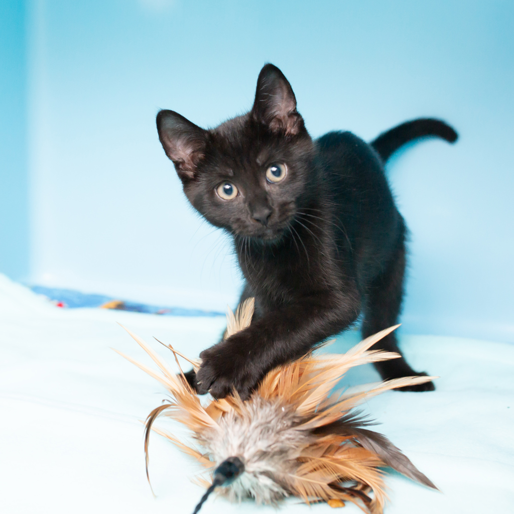 Introducing Saturn, a sleek and charming 10-week-old kitten who's as mysterious and captivating as his namesake. With his shiny coat and sparkling eyes, Saturn is a striking little star who's impossible to resist.