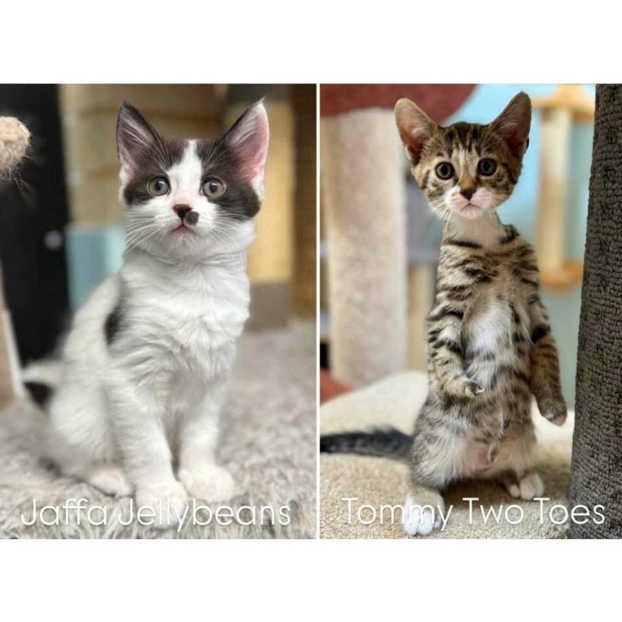 Hi friends! We’re Tommy Two Toes and Jaffa Jellybeans! We’re gorgeous, sweet kittens who would fit right into most households.