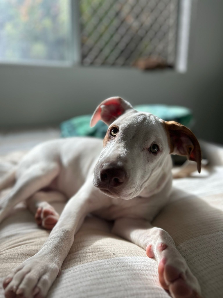 While a bit shy at first, it doesn’t take her long before she is cuddled up next to you or chasing new furry friends around the yard.