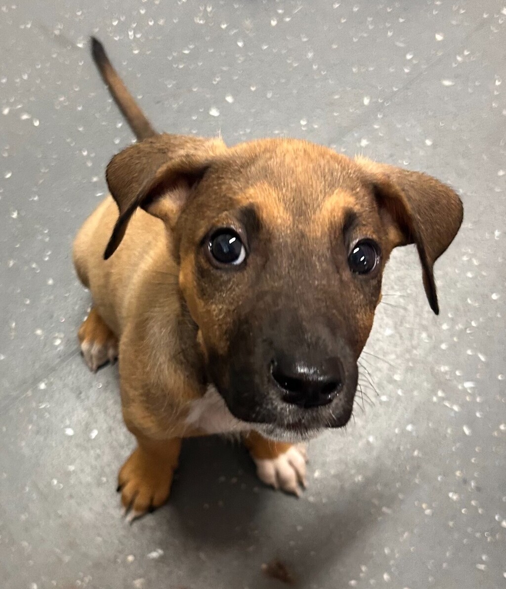 I'm just a puppy, but I've got a big heart full of love to give. I'm a bit goofy, but that's part of my charm. I love to play, and I'm always ready for a game of fetch or tug-of-war. I'm friendly too, and I love meeting new people. I'm looking for a family who will love me for who I am, and in return, I'll give them all the love and joy they could ever want. I'm ready to make some happy memories with my new family. So, why should you adopt me? Because I promise to fill your life with laughter, love, and lots of fun. I can't wait to meet you!