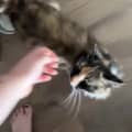 I am a fluffy, purry little lady who squeaks instead of meows - whilst I am still learning to trust and play (though I am so gentle I don’t think I could hurt a fly!), I am making wonderful progress and love soft head pats, a cosy and dark place to sleep, making biscuits on the bed and eating shredded salmon 🍣