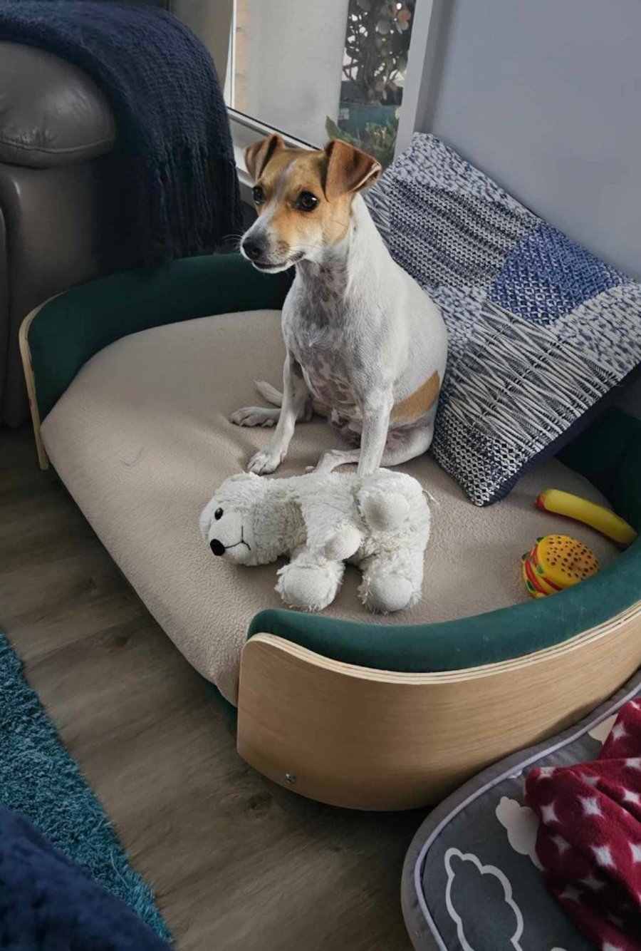 Though she’s a social butterfly with humans, Roxy prefers being the sole recipient of your attention. She'll thrive in a home where she doesn't have to share the spotlight with other pets. As evenings draw to a close, Roxy snuggles up with her teddy bear, adding a touch of sweetness to her nighttime routine.
