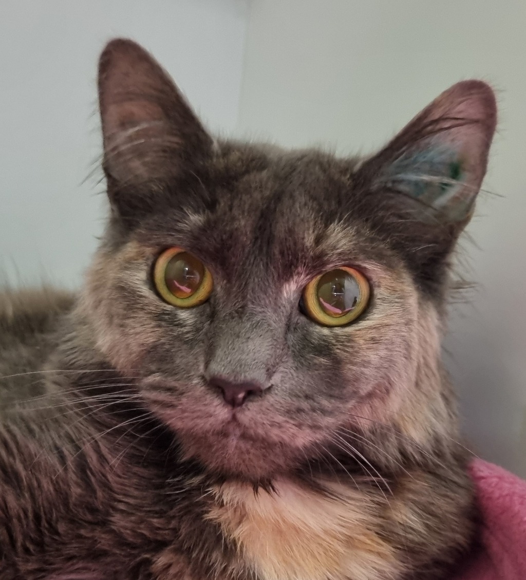 Turquoise is a sweet cat that may be best suited to an adult only home. Turquoise is an easy going cat who knows how to stay out of trouble and enjoys snoozing by a sunny window. She may be okay living with a friendly cat for company. Turquoise needs a patient home where they can be given time to feel safe and learn all about the world. Turquoise is a sensitive, intelligent creature. If you take the time to win her trust, she will be your devoted companion!