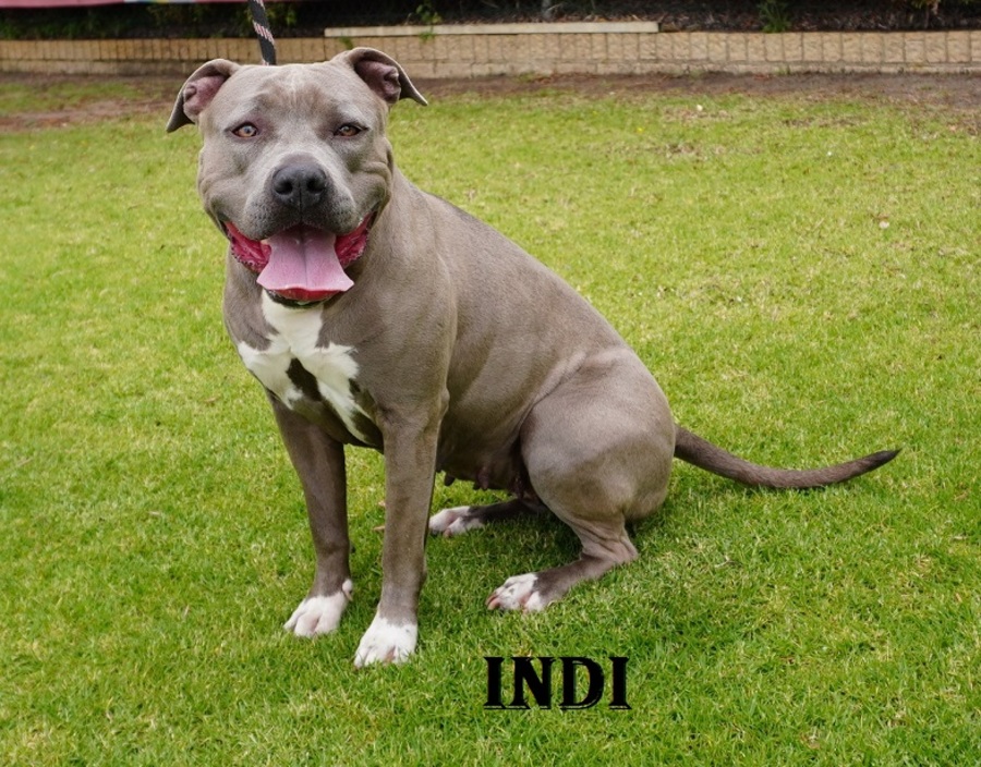 Indi is a gorgeous blue Am Staff with a sweet nature and an infectious enthusiasm for life. This spirited girl lights up every room she walks into, spreading joy and positivity wherever she goes.