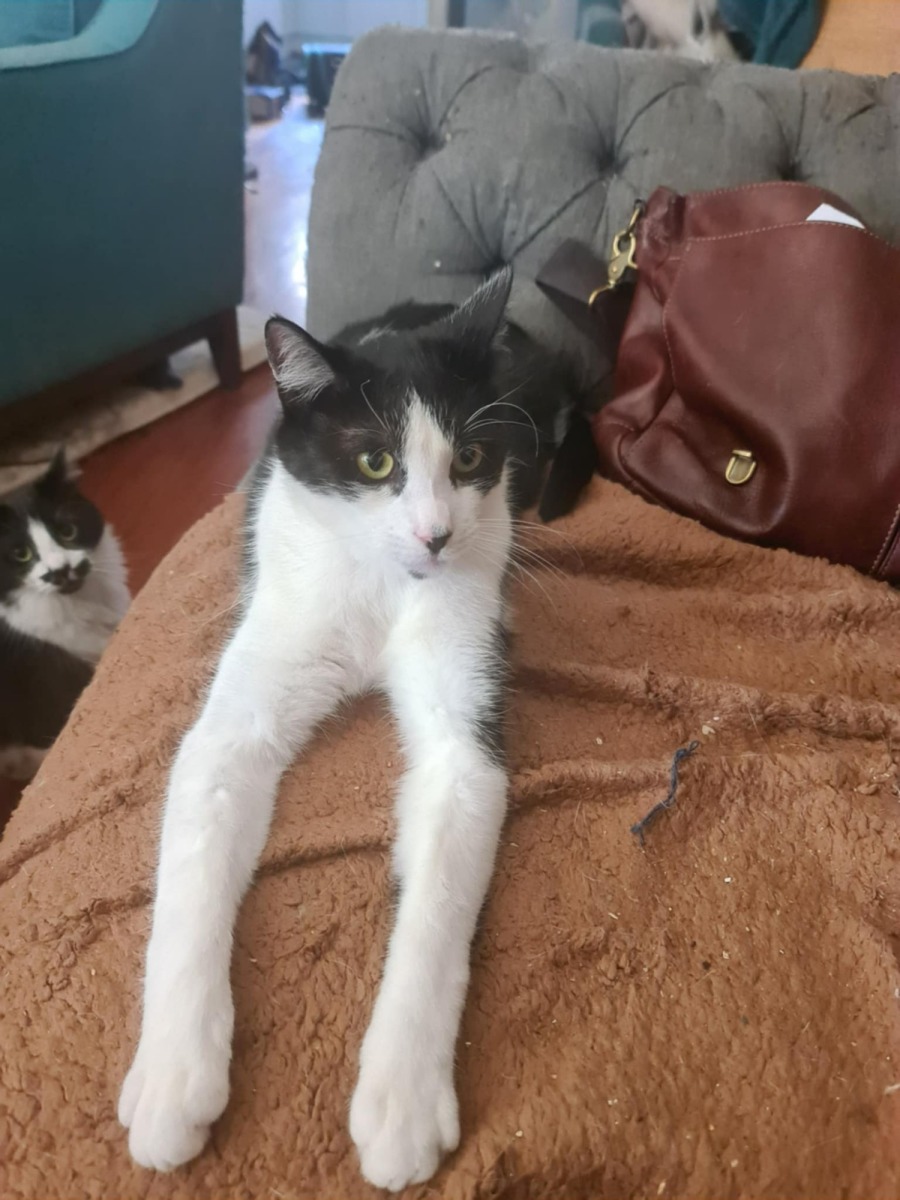 I’ve been fostered in a multi-cat household, so I’d do great with an existing friendly cat. I’m not overly active, just a bit cheeky, so I’d be just as happy sharing space with an older, laid-back kitty who likes a bit of fun but also values their privacy. I haven’t met any dogs or kids yet, but my foster mum thinks I’d adjust well to calm, well-mannered children or a cat-friendly canine.