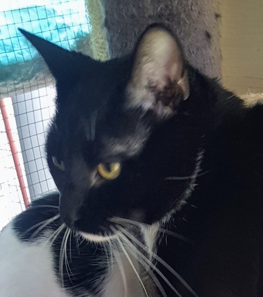 This food-motivated sweetheart loves pats and attention once he feels comfortable, and he’s sure to thrive in a loving home where he can build trust at his own pace. Tux would be a fantastic companion for someone patient and kind who’s ready to share lots of love (and snacks).
