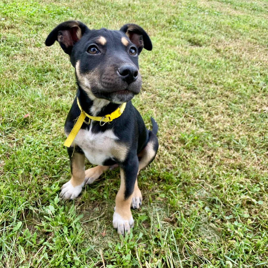 Dutton would benefit from being around an older doggy sibling to show him the ropes. He will love a big, well fenced yard to run around in as he gets older and to be part of an active lifestyle with his humans.
