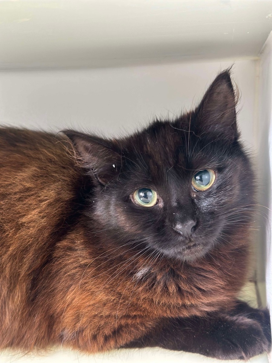 Meet Petunia, a delicate soul who's still learning to embrace the world around her. This lovely female cat may start out a bit flighty, but with patience and dedication, she'll blossom into your most affectionate companion. Her gentle, cautious nature is part of her charm, and she just needs a caring heart to help her find her footing.