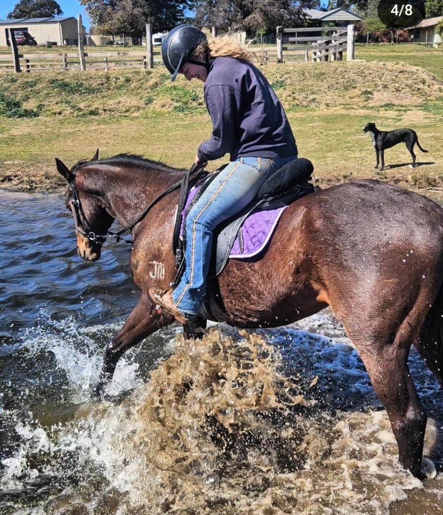He’s fantastic to float and settles quickly into the ride when out and about. He is still considered a ‘green’ trained horse as he has mostly only done trail riding and limited in the arena/groundwork so his leg aids etc could use some work. He has all the basics down though and I have never felt unsafe riding him. He can get excited when asked to transition from trot to canter and does a small hop, we believe this is because he needs help learning to balance himself in that transition, he has never tried to bolt.