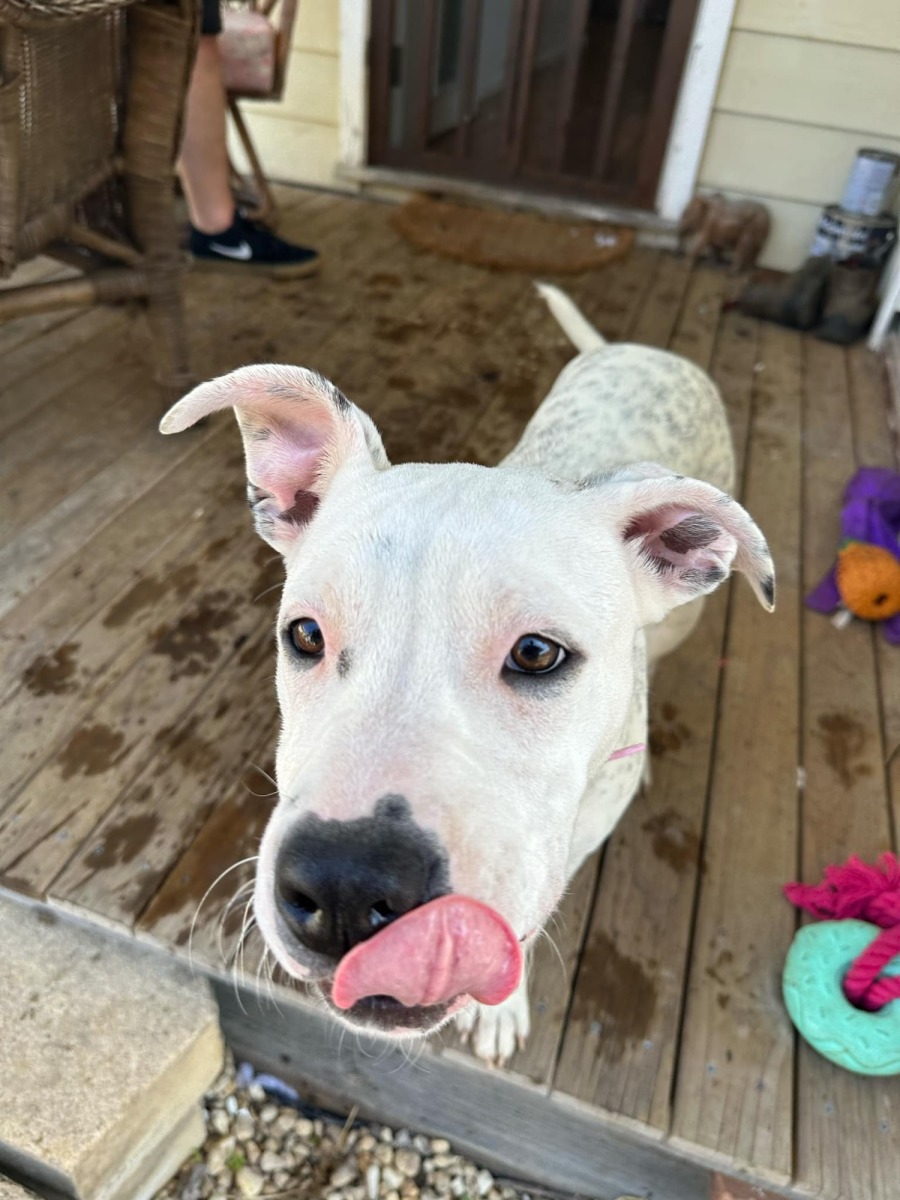 Piglet is a very sweet and calm companion who gets along with everyone—dogs, cats, and kids—and will adapt easily to any family. Her relaxed nature is complemented by bursts of cheerful energy, and she loves car rides. She's well-behaved, knows basic commands, and has great recall.