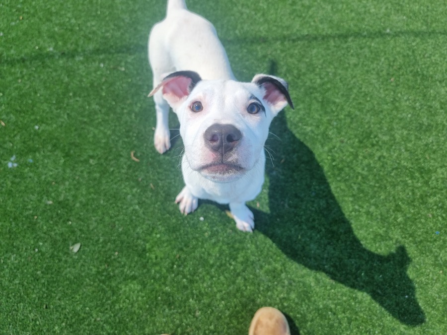 Dewey is an energetic puppy who’s eager to learn, especially when there are treats involved! While he’s still in need of some training and puppy preschool, his quick learning ability shows great promise. His boundless enthusiasm can make him quite jumpy, so he would do best in a home where he can get plenty of exercise and play each day.